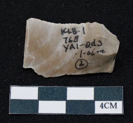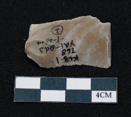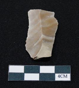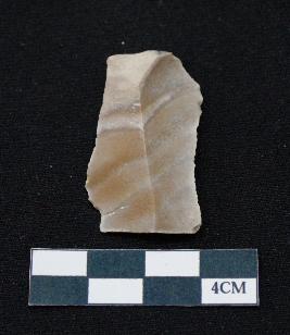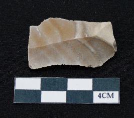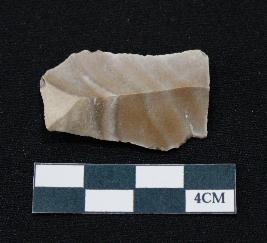 | Description / विवरण | Fragment of blade is brown in color, having smooth broken body, positive bulb of percussion at one, other end is broken, one side is retouched, other side has no retouching, mid ridge on the top and triangular section. |