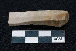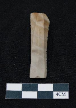 | Description / विवरण | Fragment of blade is partly brown and off white in color, having smooth body, one end broken, no retouching on sides and ridges on the top. |