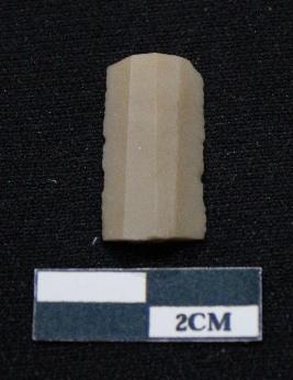 | Description / विवरण | Fragment of blade is dull brown in color, having smooth body, both ends broken, retouched parallel sides, ridges on the top and triangular section. |