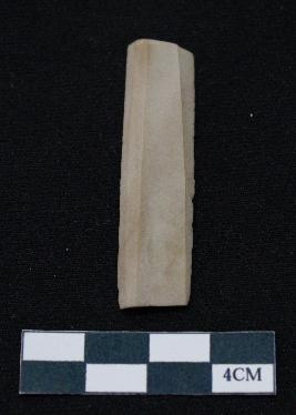 | Description / विवरण | Fragment of blade is dull brown in color, having smooth long body, both ends broken, no retouching on sides, ridges on the top and triangular section. |