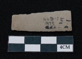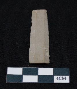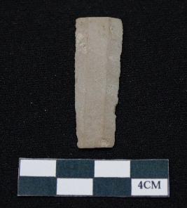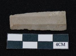 | Description / विवरण | Fragment of blade is off white in color, having long body, both ends broken, sides are retouched, ridges on the top and thin section. |