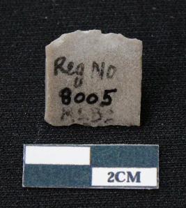 | Description / विवरण | Fragment of blade is greyish in color, having both ends broken, sides retouched, mid ridge on the top and triangular section. |