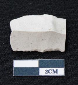 | Description / विवरण | Fragment of blade is white in color, having smooth body, both ends broken, sides are retouched, mid ridge on the top and triangular section. |