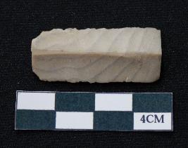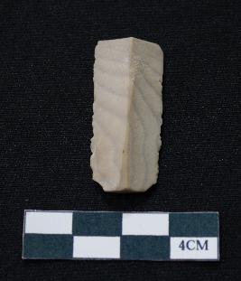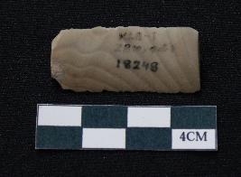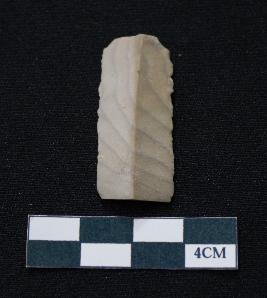 | Description / विवरण | Fragment of blade is dull brown in color, having both ends broken, sides are retouched, mid ridge on the top and triangular section. |