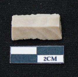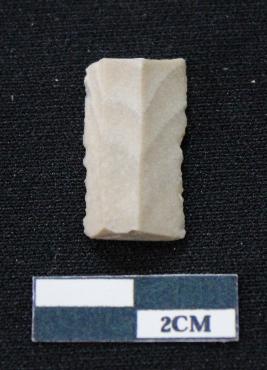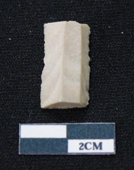 | Description / विवरण | Fragment of blade is off white in color, having both ends broken, sides are retouched, ridges on the top and triangular section. |