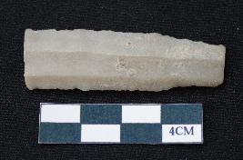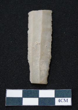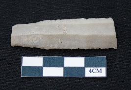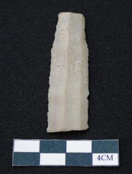 | Description / विवरण | Fragment of blade is off white in color, having smooth body, both ends broken, sides retouched, ridges on the top and thin section. |