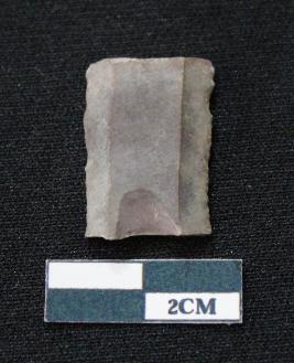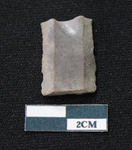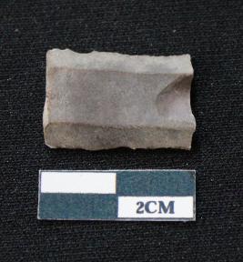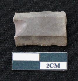 | Description / विवरण | Fragment of blade is blackish in color, having both ends broken, sides are retouched, ridges on the top and thin section. |