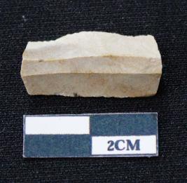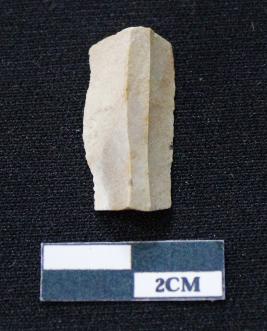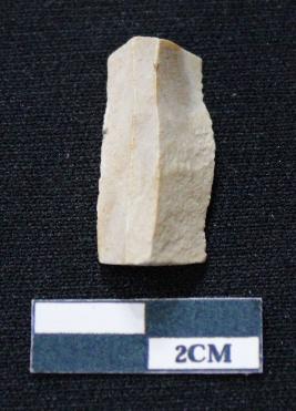 | Description / विवरण | Fragment of blade is dull brown in color, having both ends broken, no retouching on both sides, ridges on the top and triangular section. |