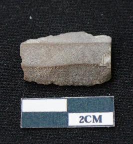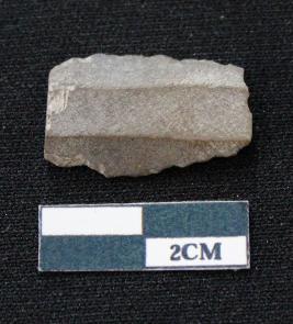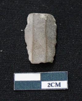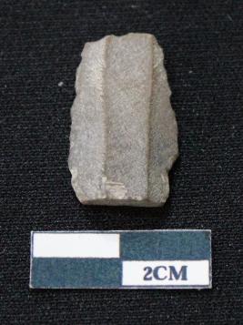 | Description / विवरण | Fragment of blade is blackish in color, having both ends broken, sides are retouched and ridges on the top. |