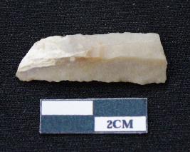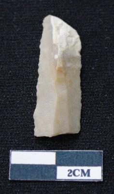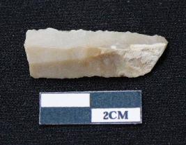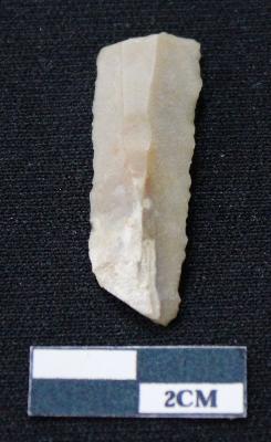 | Description / विवरण | Fragment of blade is brown in color, having both ends broken, sides are retouched, ridges on the top and triangular section. |