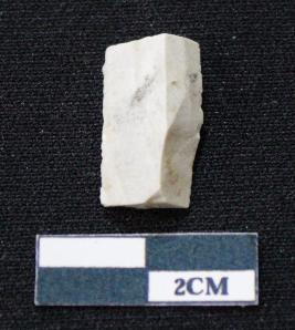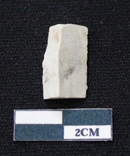 | Description / विवरण | Fragment of blade is white in color, having smooth body, both ends broken, no retouching on both sides, mid ridge on the top and triangular section. |