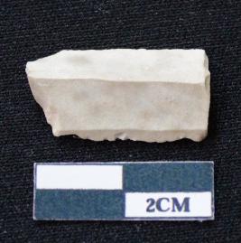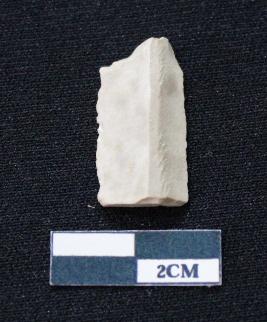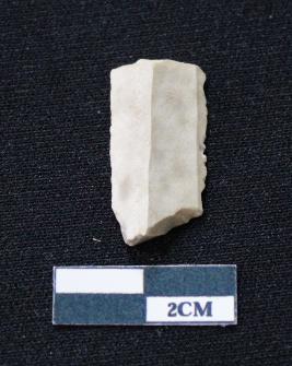 | Description / विवरण | Fragment of blade is off white in color, having broken both ends, retouching on one side, other side has no retouching, mid ridge on the top and triangular section. |
