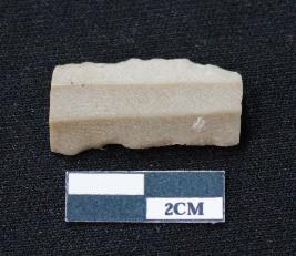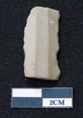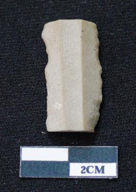 | Description / विवरण | Fragment of blade is dull brown in color, having both ends broken, sides are retouched, mid ridge on the top and triangular section. |