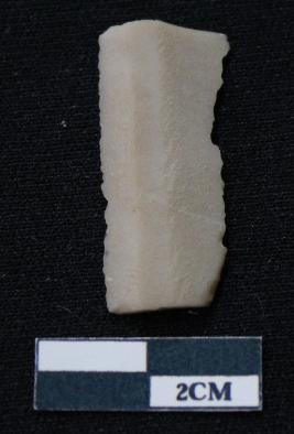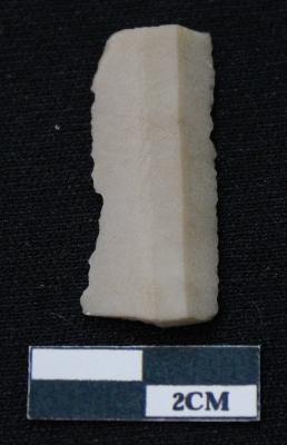 | Description / विवरण | Fragment of blade is off white in color, having both ends broken, sides are retouched, ridges on the top and thin section. |