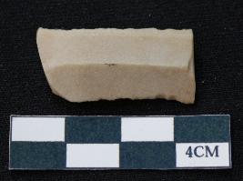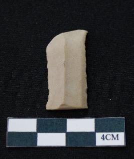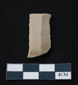 | Description / विवरण | Fragment of blade is dull brown in color, having one end broken, retouching on both sides, mid ridge on the top and triangular section. |