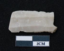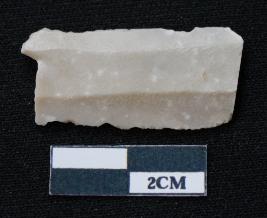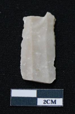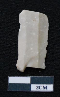 | Description / विवरण | Fragment of blade is off white in color, having both ends broken, one side retouched, other side has no retouching, ridges on the top and thin section. |