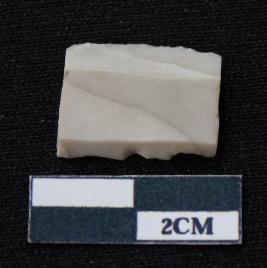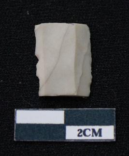 | Description / विवरण | Fragment of blade is white in color, having both ends broken, one side is retouched, other has no retouching, ridges on the top and thin section. |
