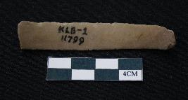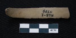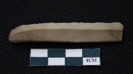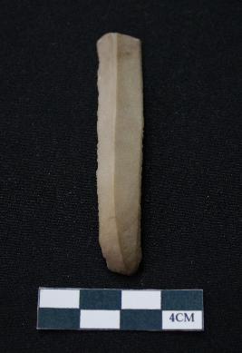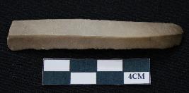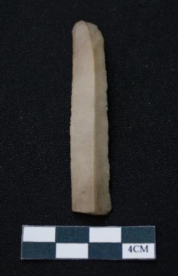 | Description / विवरण | Fragment of blade is brown in color, having one end broken, sides are retouched, long body, mid ridge on the top and triangular section. |