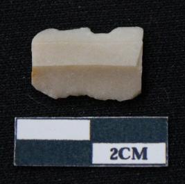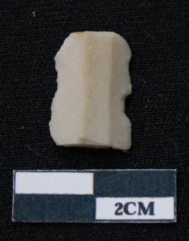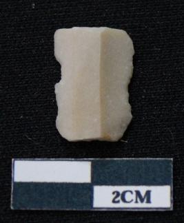 | Description / विवरण | Fragment of blade is white in color, having both ends broken, sides are retouched, ridges on the top and triangular section. |