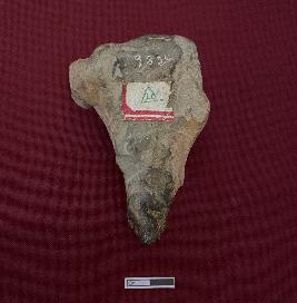 | Description / विवरण | This terracotta human head has a turban on the left side of the head. The face is calm and the features are partially visible. The object is in low relief and red in colour. |