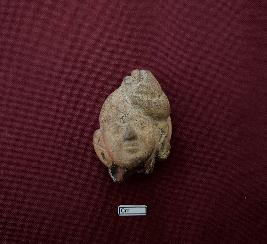 | Description / विवरण | The terracotta male head wearing a turban on the left side of the head. The ears are very prominent and elongated. expression of face is not clearly visible. |