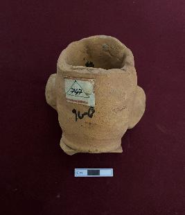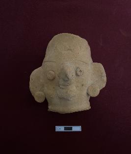 | Description / विवरण | Fragmentary terracotta Mythical head in red colour. It has appliqu nose, eyes and ears. The object is hollow in nature. |