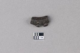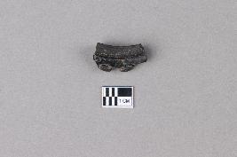 | Description / विवरण | A somewhat flattish, semi-circular lac bangle fragment with a band of uneven protruding beads as decoration. The fragment is black in colour. |