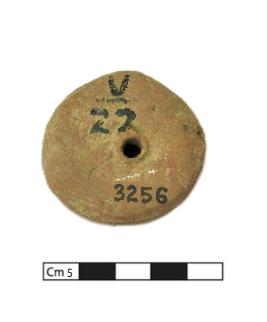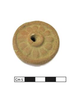 | Description / विवरण | It is a terracotta wheel with a hole in centre. The outer surface of the wheel has decorated with flower design by stamping which is main characteristic feature of Gupta period around the centre. |