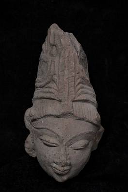 | Description / विवरण | Small head of Siva having a high jatajuta,damaged on the right side. The third eye is indicated on the forehead. Nose injured. Left ear is also damaged. |