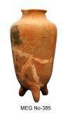 | Description / विवरण | Three legged red ware urn pot. It has slightly elongated pyriform shaped body with carinated shoulders, high neck with splayed out externally thick rim. Of thick fabric, it is treated with fine slip. |