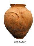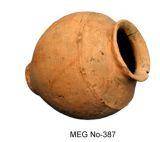 | Description / विवरण | A red ware urn pot with pyriform shaped bottom and flat base, elongated concave body with sloppy shoulders, everted thick rim. An appliqu thick band around the shoulders with looped incurved ends. A pair of nail thumb design punched at regular intervals on the band. This type of designed urns are found from the chalcolithic levels in south India. |