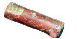 | Description / विवरण | Cylindrical stone pendent having a pair of prominent deep grooves on either sides for tying. It is light Orange red in colour. |