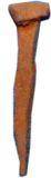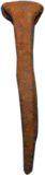 | Description / विवरण | Iron nail with slightly broken pointed bottom and thick flat top extended on one side. It has thick body. |