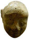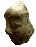 | Description / विवरण | Head of human figure. It is solidly made out of clay and well burnt. It shows clean shaven head, with oval face long snubbed nose, thick lower lip, fleshy checks, diamond shaped eyes. Half of the back portion of the bead is broken. Ear lobe is seen partly on the right side. |