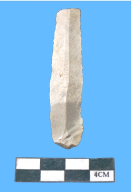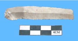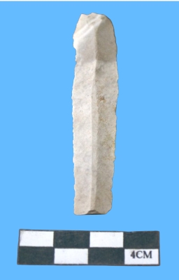 | Description / विवरण | A Fragment of parallel sided chert whitish blade with serrated on both sides, with smooth surface. |
