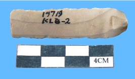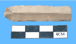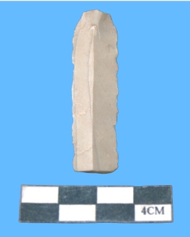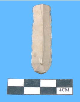 | Description / विवरण | A fragment of brownish grey blade, retouching on both sided, having mid ridge. |