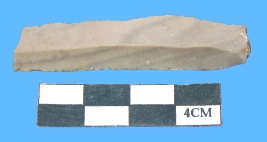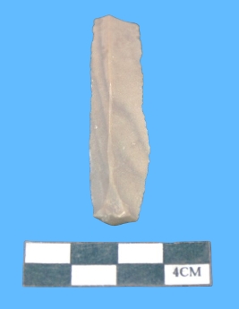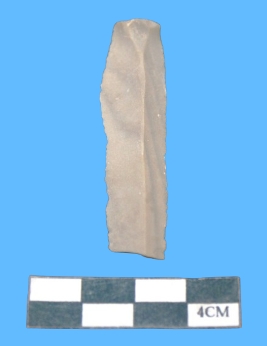 | Description / विवरण | A fragment of blade in dark grey in color having retouched on one sided with smooth surface and mid ridge. |
