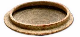 | Description / विवरण | Lid cum dish of red ware with everted and internally thickened rim and broad collar. Of coarse fabric, it is devoid of slip, it has round base. |