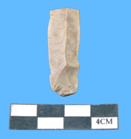| Description / विवरण | A fragment of blade is grey in color having mid ridge and retouched on both sided with smooth surface. |
