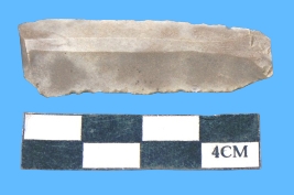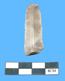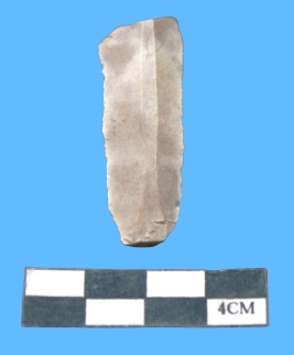 | Description / विवरण | A fragment of blade is brownish grey in color having parallel sides with retouched sides with smooth surface. |
