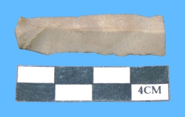 | Description / विवरण | A fragment of blade is brownish grey in color having mid ridge with smooth surface. |
