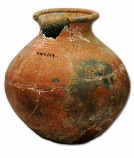 | Description / विवरण | Broken red ware pot with sagger base, convex neck, splayed out thickened rim, concentric circles below the neck. |
