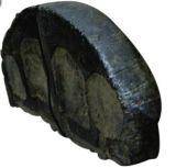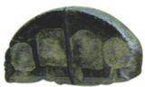 | Description / विवरण | A half broken coin mould made on black basalt stone. It has four depressions in a row made horizontally, first one is oval followed by a rectangular, pentagonal and circular shapes. |