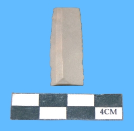 | Description / विवरण | A fragment of blade is dark grey in color having parallel sided with smooth surface. |