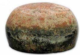 | Description / विवरण | Black and red ware deep bowl with round base and incurved featureless rim, graffiti mark i.e. inverted Brahmi letter ma and u . |