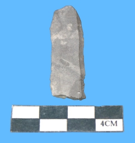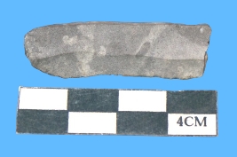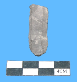 | Description / विवरण | A fragment of blade is blackish grey in color having parallel sides and smooth surface. |