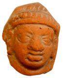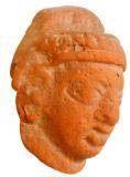 | Description / विवरण | Broken head of terracotta human figurine with oval face, short snubbed nose, thick lower lip, almond shaped eyes, slightly conical cap decorated with beaded design and a tight necklace. |