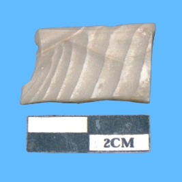 | Description / विवरण | A fragment of blade is grayish in color having various ridges with slightly rough surface. |