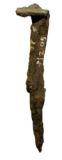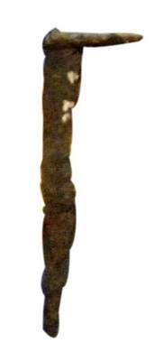 | Description / विवरण | An iron nail having pointed functional end with thick flat top, which is extended horizontally to one side. |
