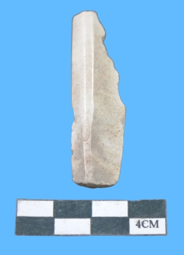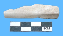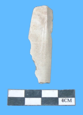 | Description / विवरण | A fragment of whitish color blade with ultra smooth surface with half part of left side is notched and half are smooth. |